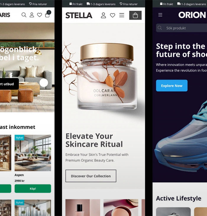 Choose from our three design templates—Polaris, Stella, and Orion—as the visual foundation for your digital presence. Explore the three demo stores below to see what suits you best. If you have any questions, feel free to contact us.