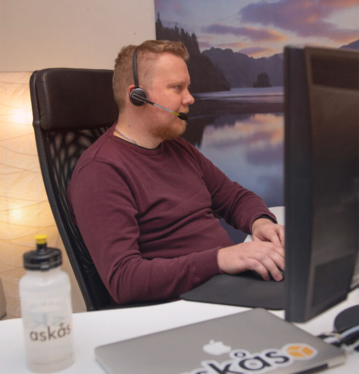 Via web and e-mail, in our support center at support.askas.se and telephone support during office hours. 0533-69 16 00